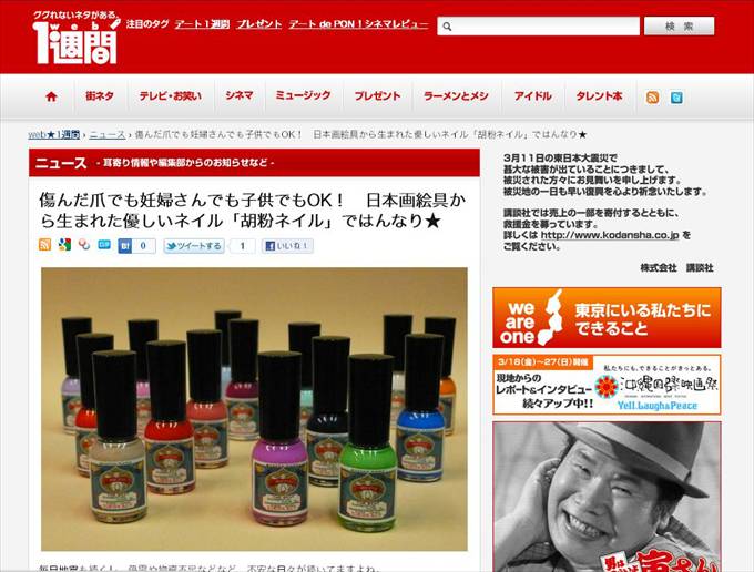講談社WEB1週間にて胡粉ネイルが掲載されました。