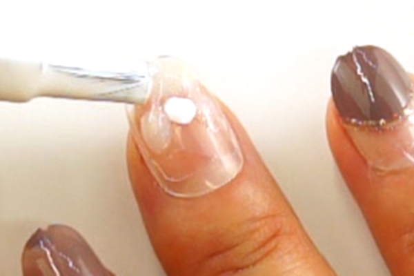 5)バランスを見てネイルパーツを貼り付けたら、仕上げにスーパーコートを塗ります。