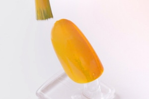 4)中指と小指の爪に黄紅葉を二度塗りし、乾かします。