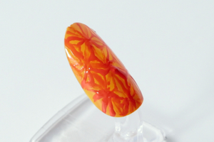 2)薬指以外の爪に、黄紅葉(きもみじ)を二度塗りします。
